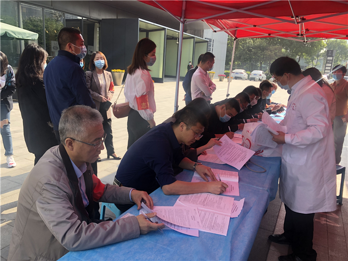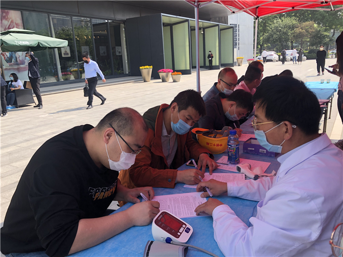 白樺林國際A座旁的空地上,出現(xiàn)了一批又一批擼起袖子的人們。是因?yàn)樘鞖庋谉?、驕陽似火?不是,他們是為一份份“熱血”自愿挽起衣袖?