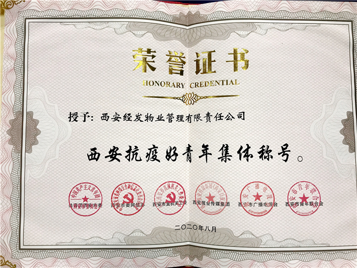 近日,共青團(tuán)西安市委聯(lián)合西安市委網(wǎng)信辦、西安市直機(jī)關(guān)工委、西安報(bào)業(yè)傳媒集團(tuán)等單位共同舉辦“抗疫好青年”發(fā)布儀式,對100名“抗疫好青年”、40名“抗疫好青年”集體進(jìn)行現(xiàn)場表彰,經(jīng)發(fā)物業(yè)榮獲“西安抗疫好青年集體”稱號(hào)。