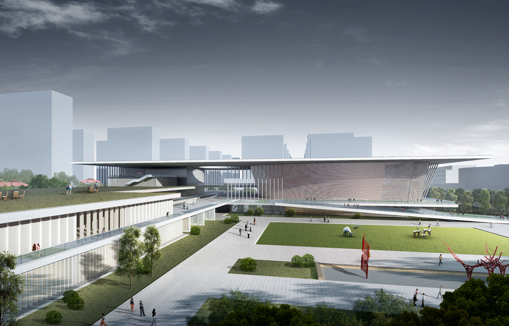 文化中心主要功能為公共藝術中心、1200人劇場和600人會議中心。公共藝術中心規(guī)劃有400 座的多功能演藝廳、藝術展廳、藝術沙龍及藝術品商店等。