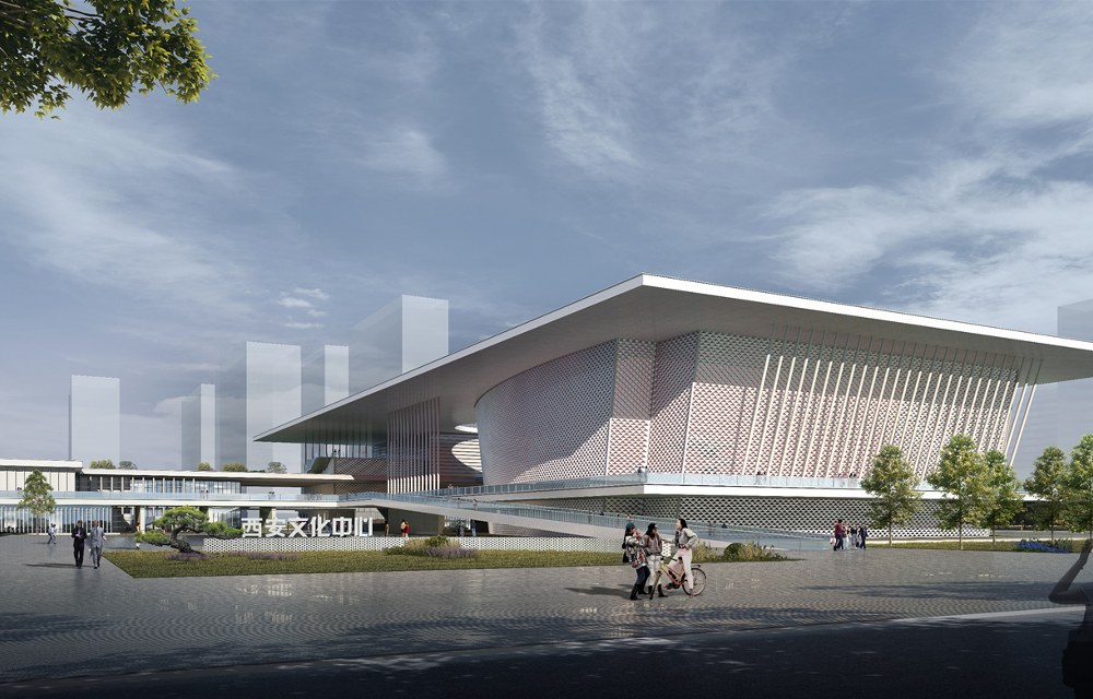 開(kāi)元?jiǎng)?chǎng)功能分為劇場(chǎng)、公共藝術(shù)中心和群眾活動(dòng)中心三部分。東北側(cè)的大劇場(chǎng)可容納觀(guān)眾約1200人;西北側(cè)的公共藝術(shù)中心包含一個(gè)多功能演藝廳,可容納觀(guān)眾約500人;地下停車(chē)場(chǎng)設(shè)置兩層,規(guī)劃車(chē)位約580個(gè)。