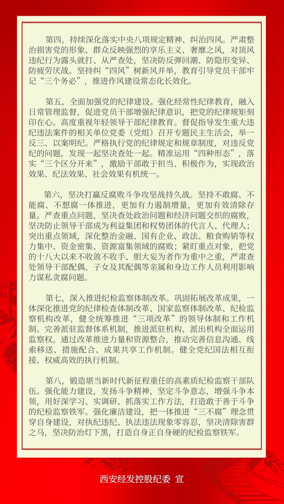 全會(huì)強(qiáng)調(diào),2023年是貫徹黨的二十大精神的開局之年,是實(shí)施“十四五”規(guī)劃承前啟后的關(guān)鍵一年,是為全面建設(shè)社會(huì)主義現(xiàn)代化國家奠定基礎(chǔ)的重要一年。做好紀(jì)檢監(jiān)察工作,要堅(jiān)持以習(xí)近平新時(shí)代中國特色社會(huì)主義思想為指導(dǎo),全面貫徹落實(shí)黨的二十大精神,堅(jiān)決貫徹堅(jiān)定不移全面從嚴(yán)治黨戰(zhàn)略部署,認(rèn)真落實(shí)健全全面從嚴(yán)治黨體系任務(wù)要求,深入開展黨風(fēng)廉政建設(shè)和反腐敗斗爭,深入推進(jìn)新時(shí)代新征程紀(jì)檢監(jiān)察工作高質(zhì)量發(fā)展,為全面建設(shè)社會(huì)主義現(xiàn)代化國家開好局起好步提供堅(jiān)強(qiáng)保障。